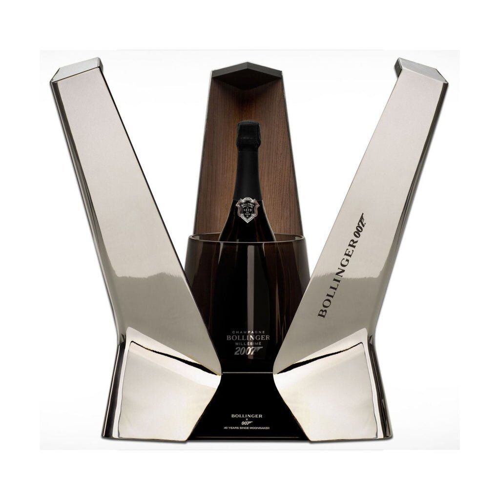 When 007 is ready to celebrate, he reaches for a bottle of Champagne Bollinger. The official champagne of James Bond since 1979, Champagne Bollinger is ready to commemorate the 40th anniversary of their partnership with a special limited edition release. The release pays homage to Moonraker, the film on which the Bond and Bollinger partnership began. The bubbly is packaged in a Moonraker inspired space shuttle box made from pewter and wood veneer that holds a Saint Louis crystal ice bucket and a magnum of Champagne Bollinger 2007. Only 407 were made, each of which arrives numbered and was crafted and finished by hand.